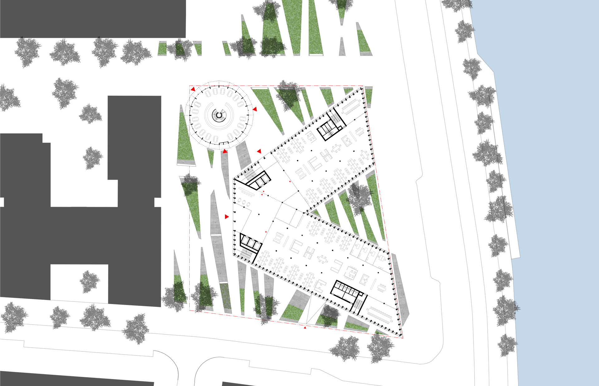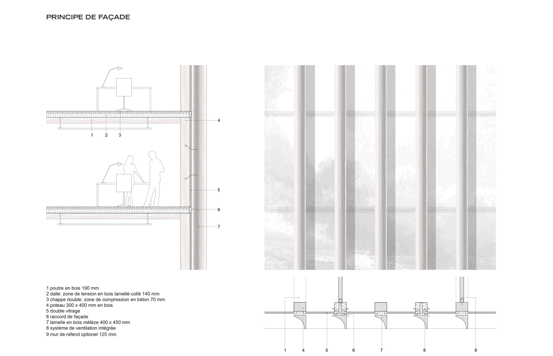 [FR] Nous imaginons un immeuble de bureaux novateur et attractif. Orienté vers la Seine afin d’optimiser la vue vers le fleuve dont pourront disposer les usagers, il marquera fortement son environnement par sa forme très originale. Adapté aux nécessités écologiques d’aujourd’hui et de demain, mais également aux transformations des modes de travail, ce bâtiment se veut totalement flexible dans son aménagement, notamment grâce à sa structure, écologique et durable. En privilégiant la lumière naturelle et en optant pour une grande présence du bois tant à l’intérieur qu’à l’extérieur, pour les pare-soleil verticaux, nous souhaitons que le bâtiment diffuse une ambiance de travail chaleureuse et agréable.