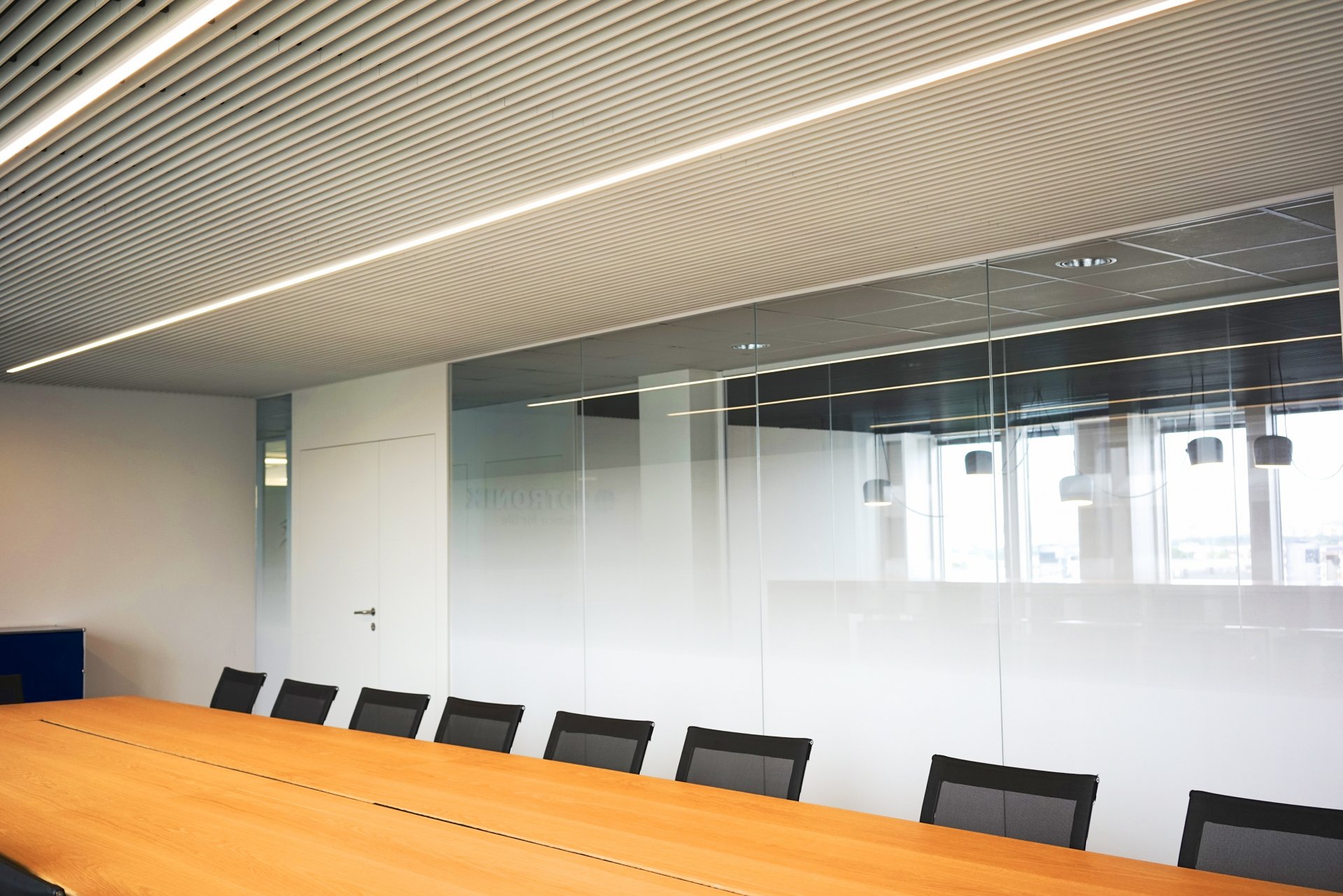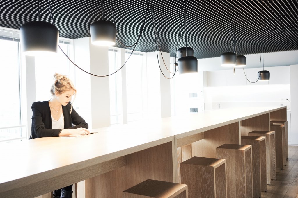 [FR] Notre première mission pour l’entreprise Biotronik prévoit une rénovation et restructuration d’un étage entier dans un immeuble de bureaux à Rungis. Au lieu des bureaux fermés existantes il y a une grande partie qui travaille en open space ou dans des bureaux entièrement vitrés pour améliorer la luminosité et la communication. Au milieu du plateau on retrouve une grande cuisine, qui est aussi lieu de rencontre et du travail informel. En face nous positionnons une grande salle de réunion qui est utilisée pour des séminaires et conférences.