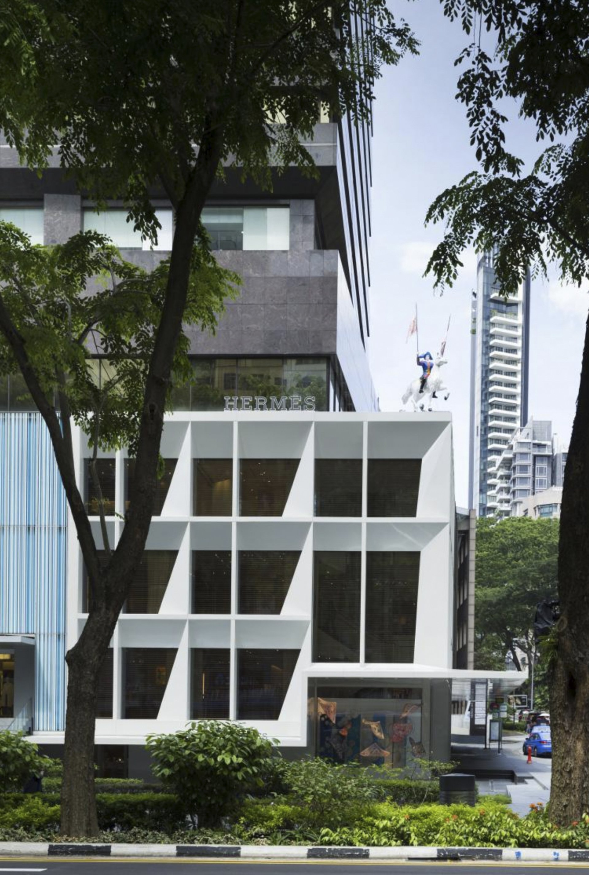 [FR] Conception de la facade pour la boutique Hermès à Singapour basée sur l’idée d’un papier origami et le jeu entre lumière et l’ombre.