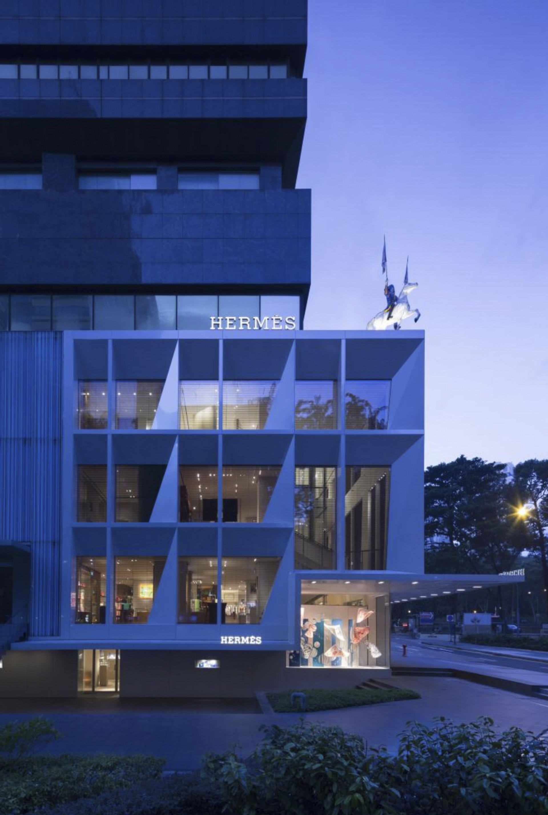 [EN] Design of the facade for Hermès Singapore based on the idea an origami paper playing with light and shadow.